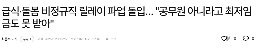 [한국일보] 급식·돌봄 비정규직 릴레이 파업 돌입… "공무원 아니라고 최저임금도 못 받아"