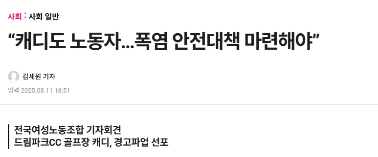 [여성신문] “캐디도 노동자…폭염 안전대책 마련해야”