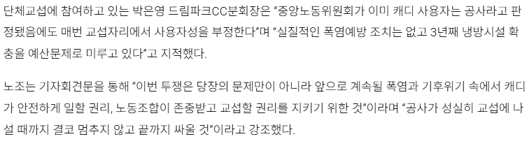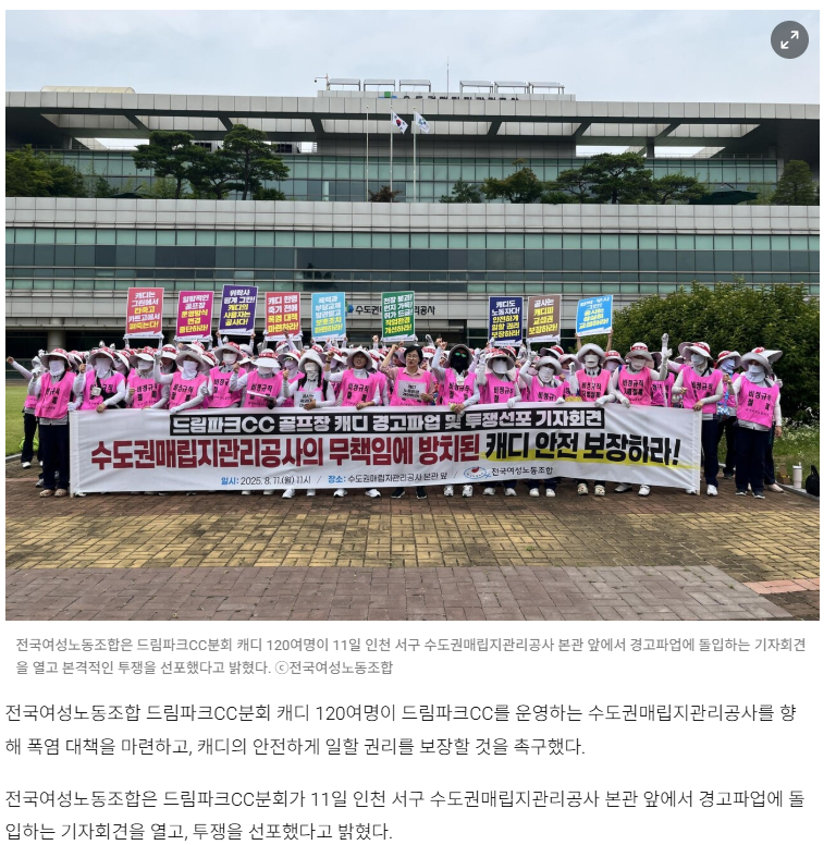 [매일노동뉴스] “쥐 나오는 휴게실” 드림파크 캐디노동자 하루 파업