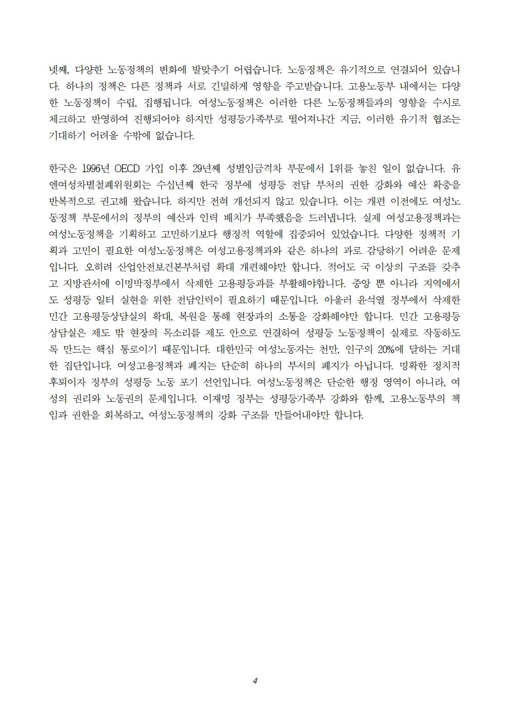 [공동성명] 고용노동부는 여성고용정책과 폐지말고 확대・강화하여 성평등노동정책을 강력히 추진하라!