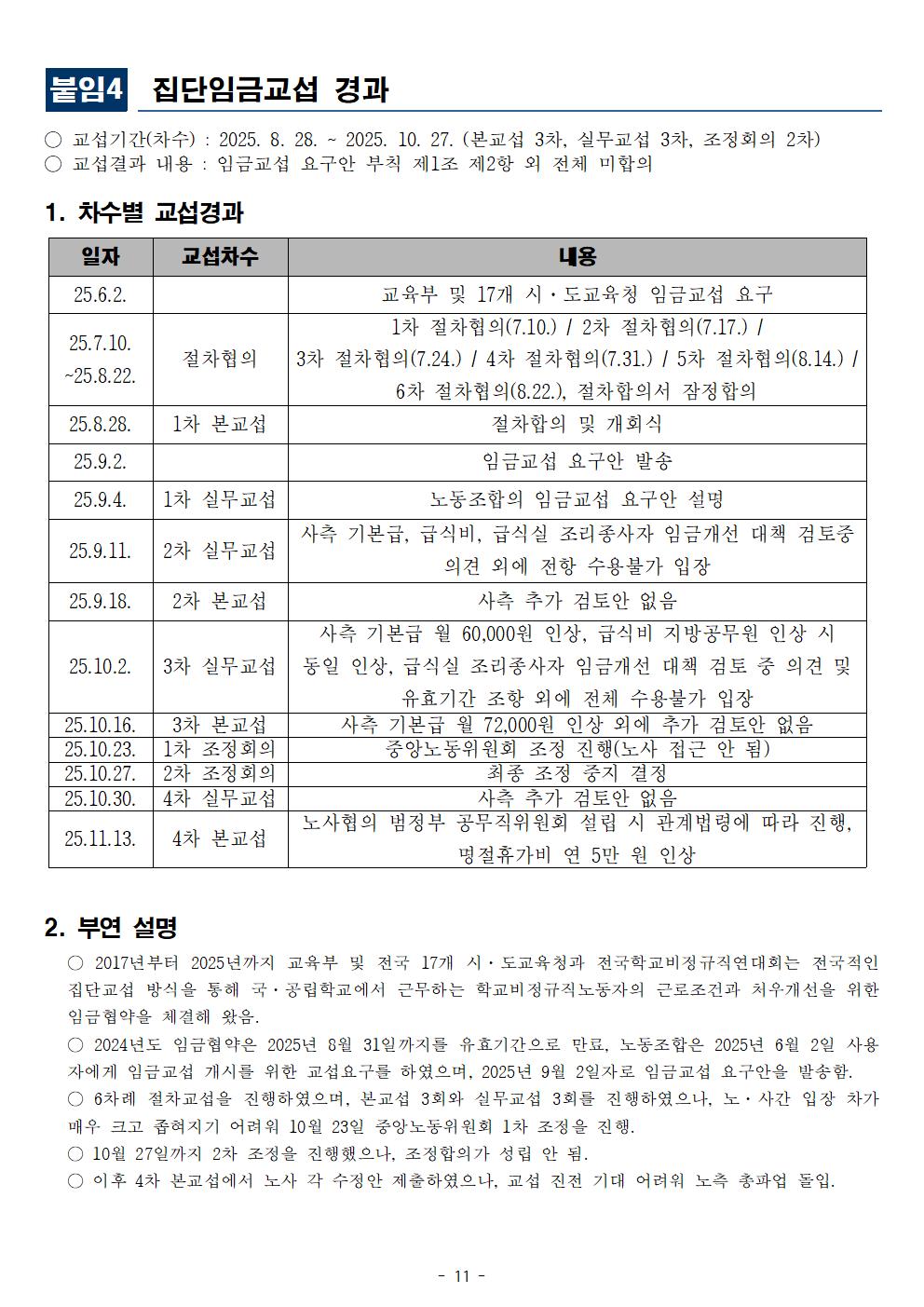 [보도자료] 전국학교비정규직연대회의 총파업 일주일 앞둔 마지막 본교섭 상황과 노동조합 입장 발표