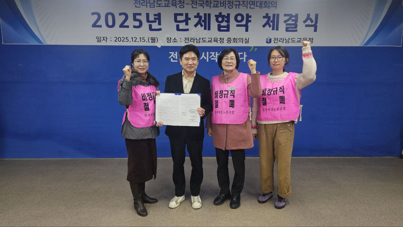 특히 이번 단협은 여성노조 전남지부 출범 후 첫 체결이라는 큰 의미도 담겨 있습니다. 여성노조는 단체협약 체결의 힘으로, 더 강한 연대와 투쟁으로 나아가겠습니다.