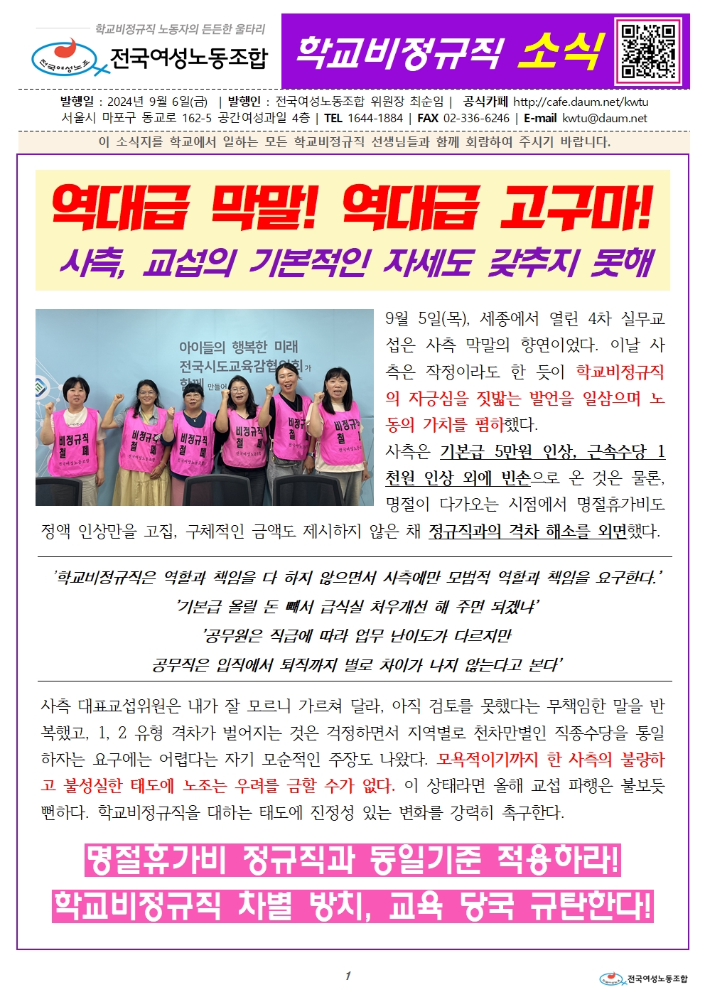<학비소식지> 역대급 막말! 역대급 고구마! 사측, 교섭의 기본적인 자세도 갖추지 못해