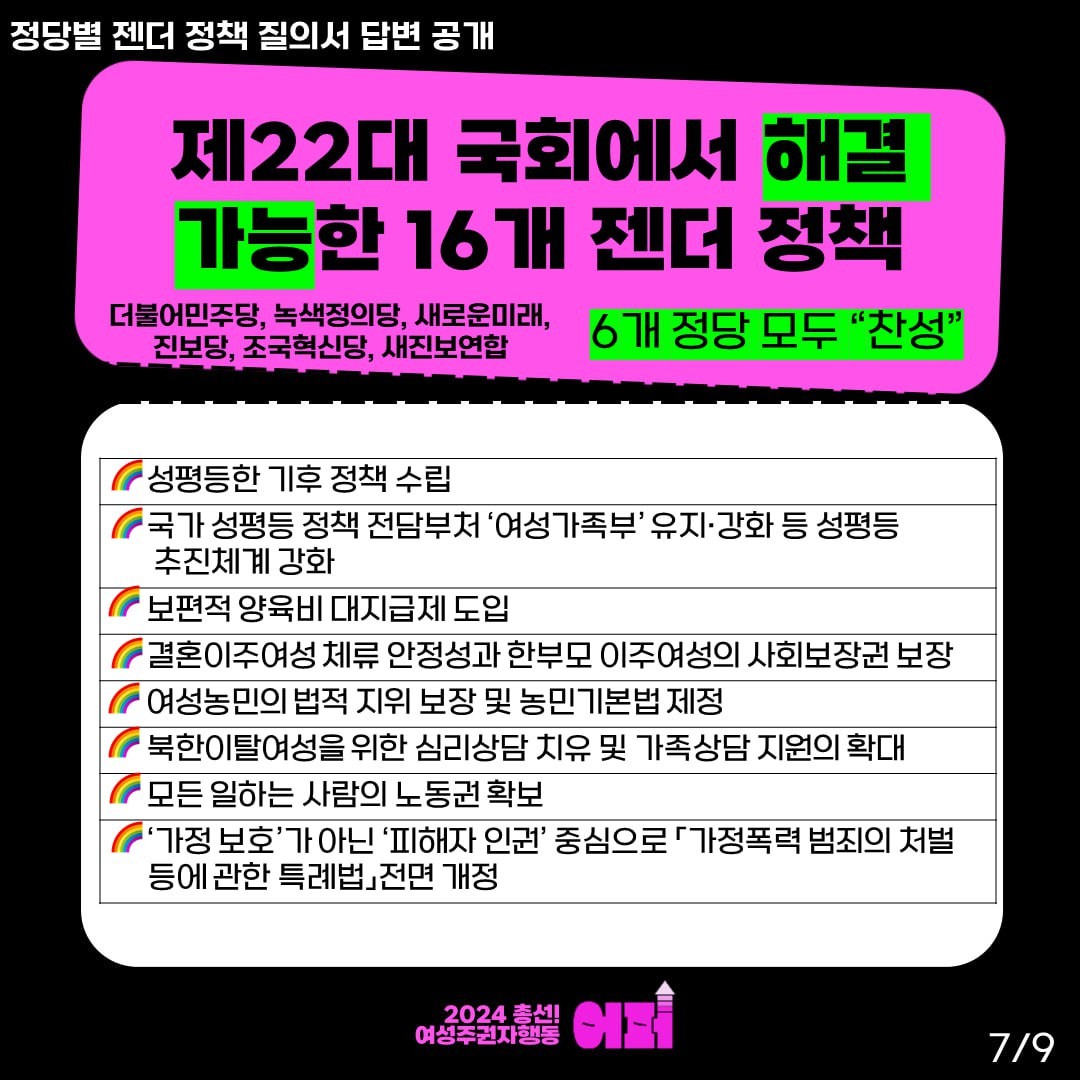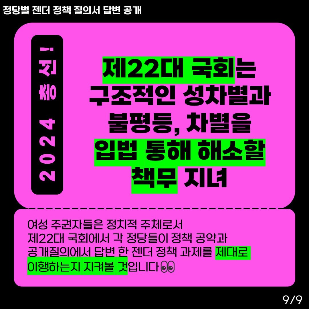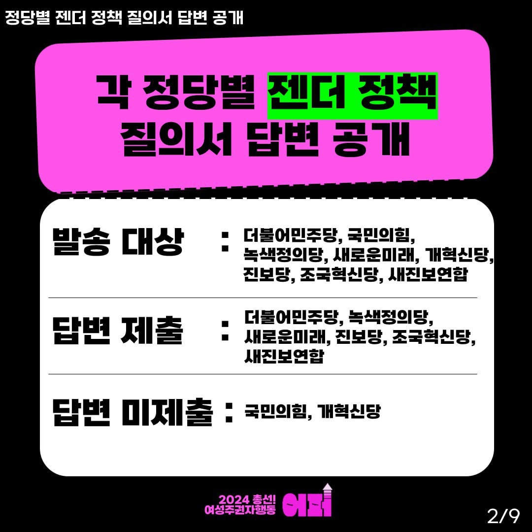 🔥각 정당별 젠더 정책 질의서 답변 공개 (첫번째 시리즈!)