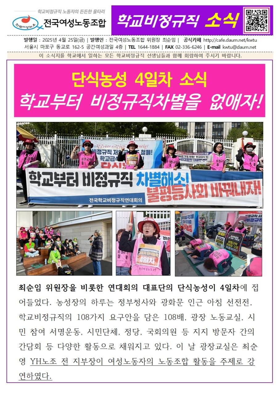 최순임 위원장을 비롯한 연대회의 대표단의 단식농성이 4일차에 접어들었다.